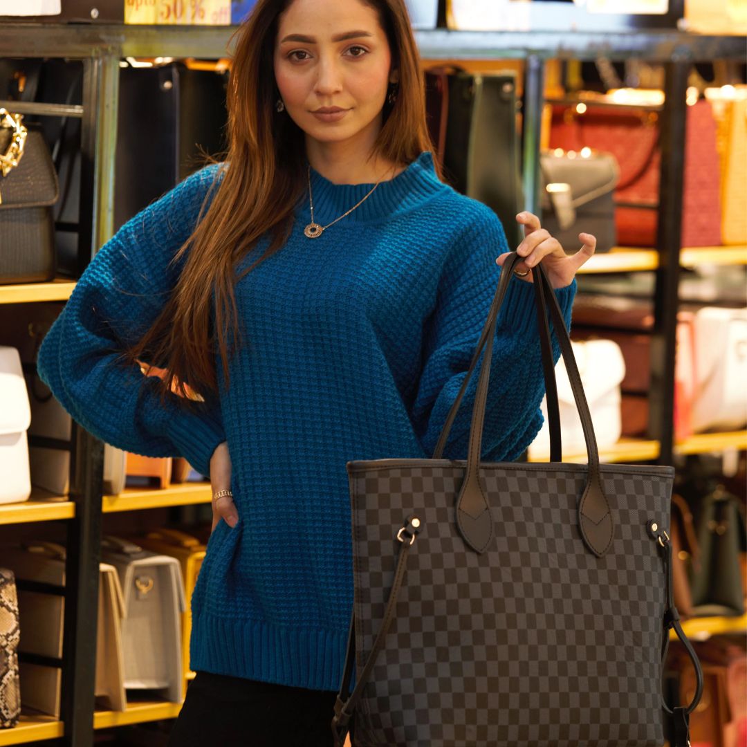Lustre Pearl Tote – Chic Navy Blue Handbag with Pearl Handle