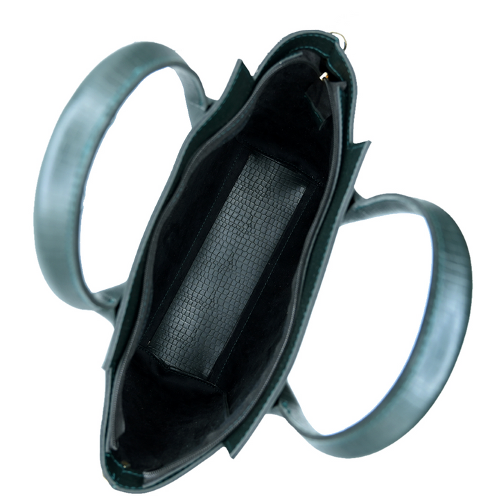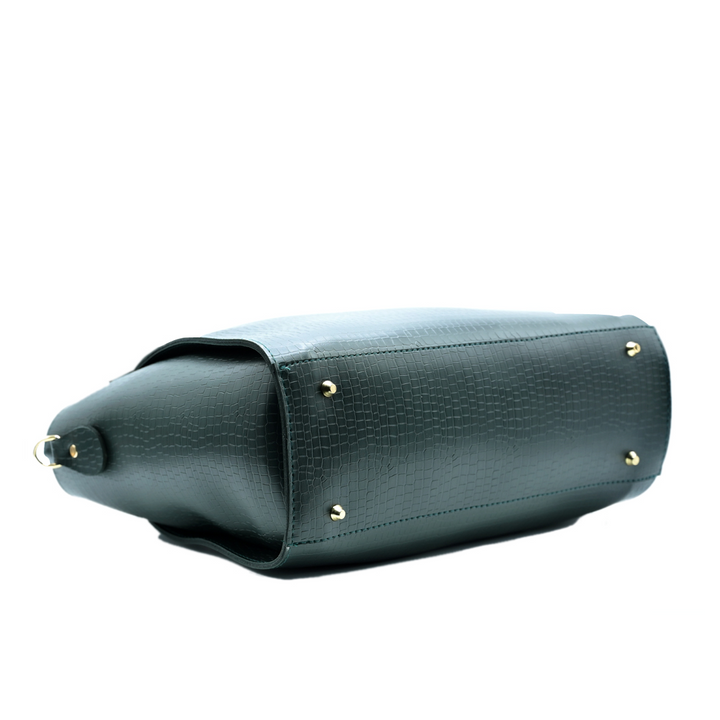 Aurora Box Tote Bag for Women – Olive Green Structured Handbag with Long Strap & Pouch