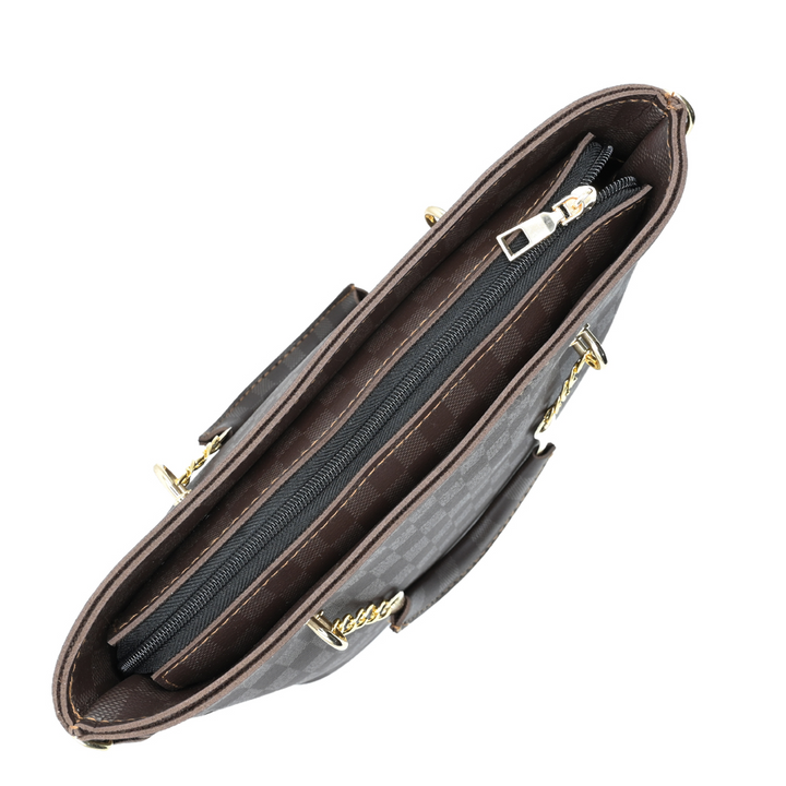 Made from premium PU leather in a dark brown checkered pattern, this handbag is durable, classy, and versatile. The gold chain handles bring a modern chic touch, while the spacious interior makes it a perfect daily companion for work, university, travel, or casual outings.