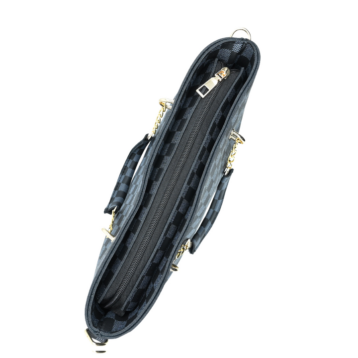Made from premium PU leather with a classic black checkered pattern, this tote handbag is both durable and versatile. The gold chain handles bring a touch of sophistication, while the spacious design makes it perfect for daily use, office, university, or casual outings.