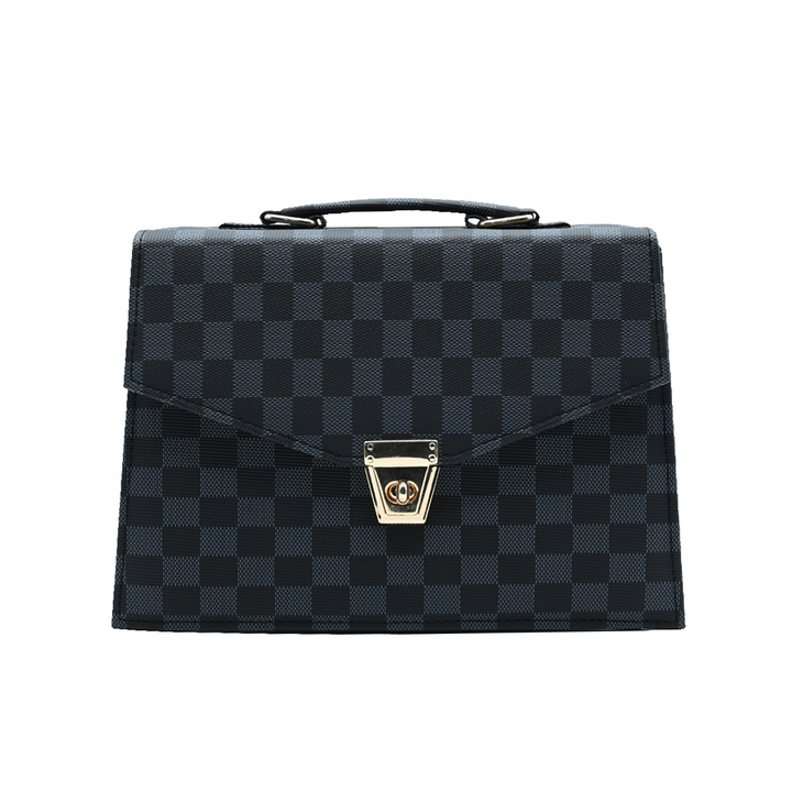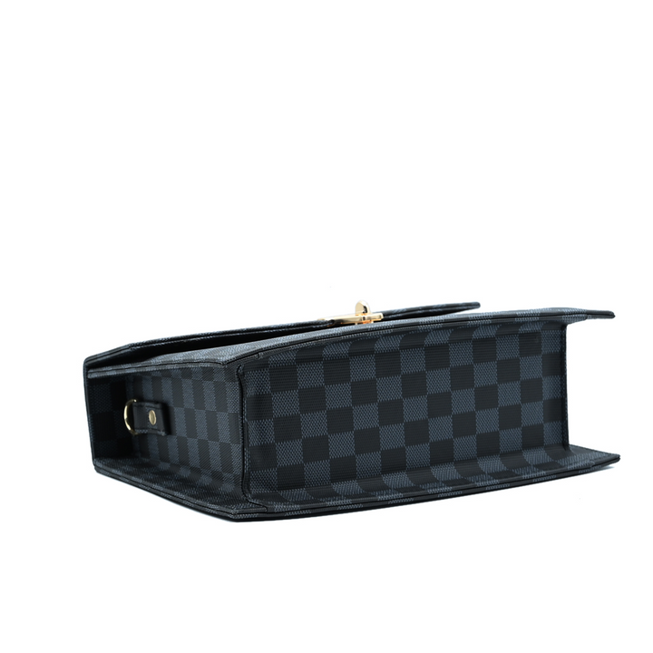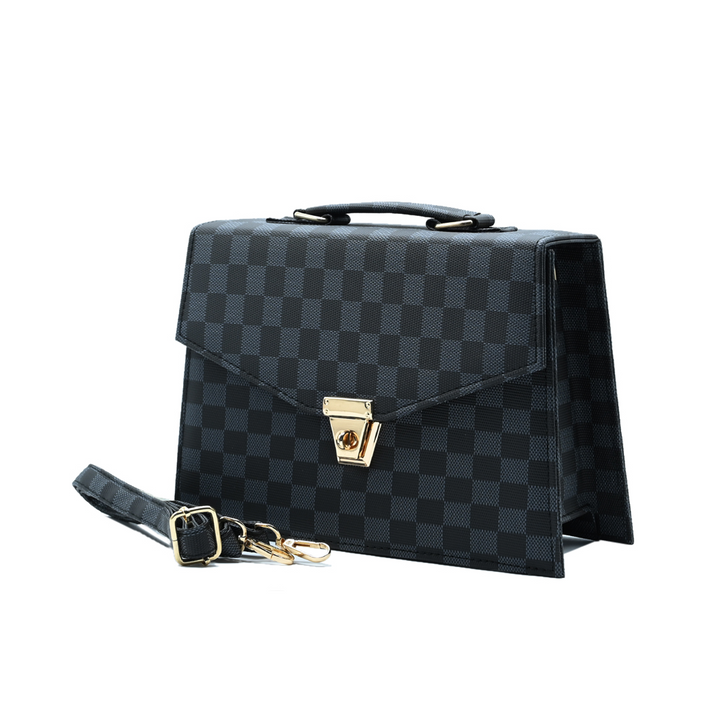 Sleek, versatile, and modern – the Classic Square Tote in Black is designed to elevate any look. Featuring a striking checkered pattern and gold-tone lock closure, this bag blends timeless elegance with everyday practicality. Its structured silhouette makes it perfect for both professional and casual outings, giving you effortless sophistication.