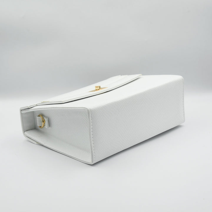 Length: 10" \nHeight: 8" \nDepth: 4" \nInside pocket: 7.5" \nStrap: 42"