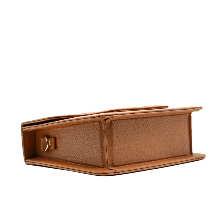 The Lustre Pearl Tote in tang (warm orange-brown) is a statement piece that blends boldness with elegance. Featuring a pearl handle and gold hardware, this bag brings a perfect balance of trend and tradition. Its rich earthy tone makes it ideal for everyday wear and festive occasions alike.