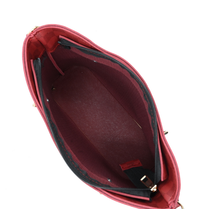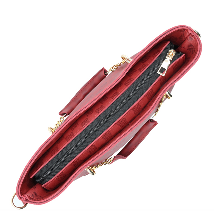 Crafted from high-quality PU leather in a luxurious maroon checkered pattern, this tote is perfect for both casual and formal wear. The gold chain handles enhance its charm, while the spacious interior ensures practicality for daily use.